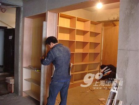 前言:沒有過分的花哨,簡約的裝修方式讓居家環境變得舒適放松。而色彩的搭配又給了家明亮、歡快之感。 這個戶型是四室兩廳的,但是有兩間房子沒有將四面墻砌完整,留了對客廳的墻,可能也是考慮到戶主的裝修問題吧,呵呵。 師傅們一進門就忙開了。 水電的走向和插座的布置已經到位,師傅在做客房的大柜子,帶頭的師傅非常內行,幫我們出主意。 客房超大的柜子。