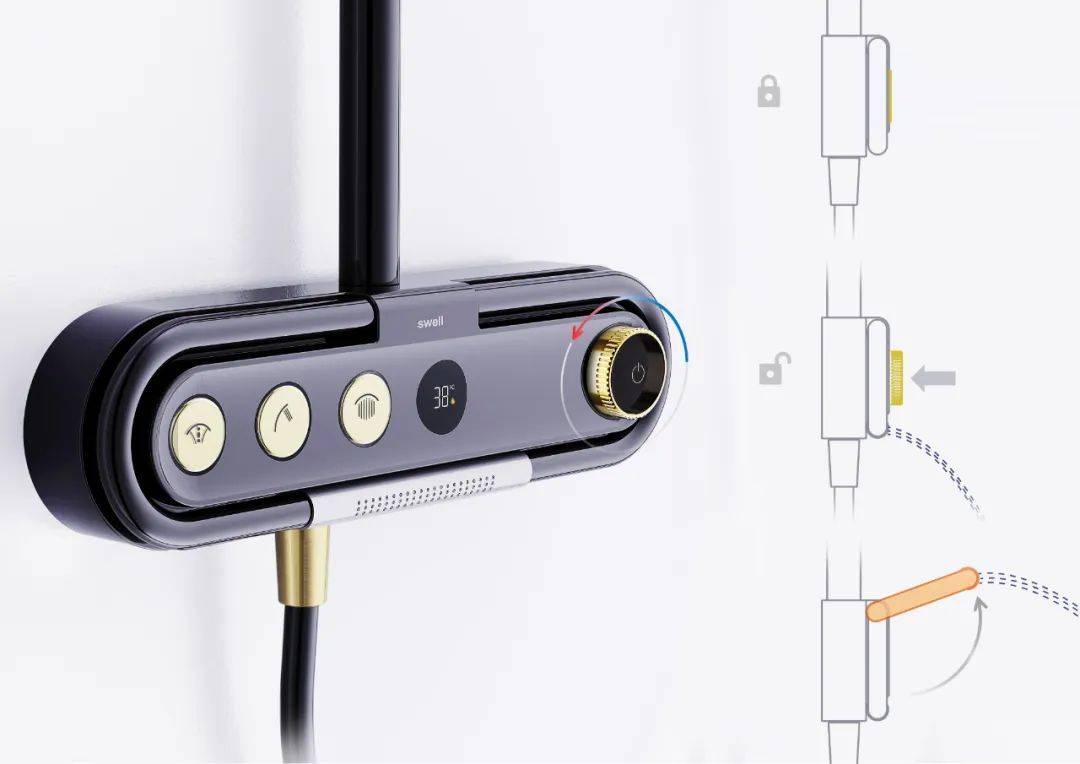 用戶還可以自由選擇半身或全身淋浴,不慎滑倒的話可充當臨時扶手的作用,給老人和小孩淋浴帶來必要的安全防護。配備了超短行程和輕觸按鈕,提供了省時的用水控制,旋鈕允許精確的溫度選擇。產品外殼和功能可以定制化組合,從而為你提供更多規格選擇。