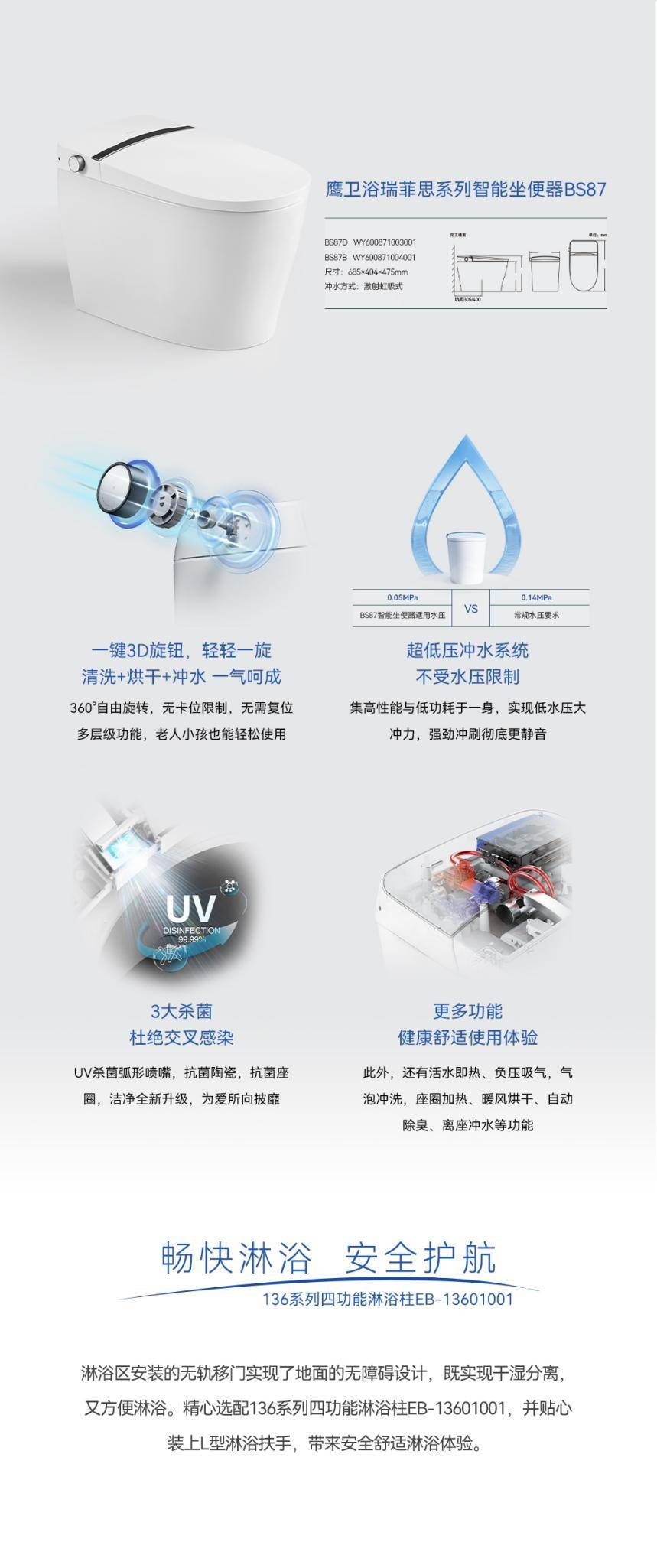 智能化衛(wèi)浴在適老化改造中起到越來越重要的作用。比起傳統(tǒng)馬桶,智能坐便器,擁有座圈加熱、健康水洗、暖風(fēng)干燥、除菌抗菌等,更適用于老年人的使用。鷹衛(wèi)浴瑞菲思系列智能坐便器BS87,擁有人性化的設(shè)計(jì),全面的智能功能,健康水洗體驗(yàn),便捷的遙控操作,讓“養(yǎng)老”變“享老”。