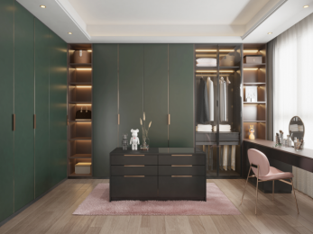 通過精巧的造型規(guī)劃、燈光布局與收納、展示功能等進(jìn)行整合,流暢的空間布局和奢石應(yīng)用完美融合,規(guī)整的比例線條,也讓衣帽間擁有美妙的律動(dòng)節(jié)奏。衛(wèi)浴空間布局合理又貼心,整體干凈純粹,推拉門隔離干濕區(qū),洗手臺(tái)和淋浴區(qū)采光都滿足,實(shí)用又美觀,采用奢石材質(zhì),重組成一個(gè)充斥著個(gè)人情緒的靜謐空間。