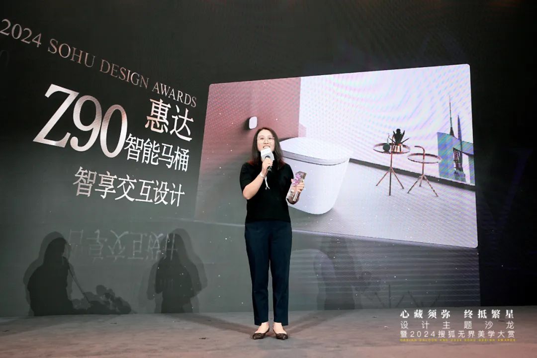 此次獲得“智享交互設計獎”的惠達Z90智能馬桶,創新性地采用語音交互控制,讓產品使用更輕松;同時,還融合了智能交互燈光,實時反饋當前的工作情況與殺菌功能特性。在一體化的簡潔、圓潤造型之下,產品植入了精準的感應模塊,五檔微波測距翻蓋,全過程零接觸操作,有效防止細菌傳播。此外,更有紫外線殺菌、電解水殺菌、久坐提醒、四季溫控等黑科技功能加持,在提供優秀設計與交互的同時,也帶來了出色的健康衛浴新體驗。
