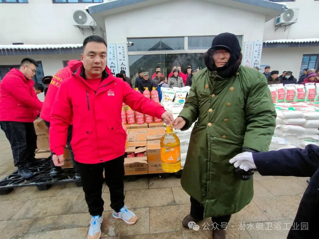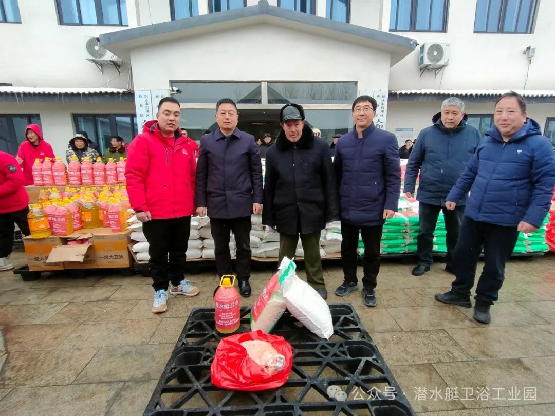 市工商聯副主席劉永 、宿豫區退役軍人事務局副局長丁斌、潛水艇衛浴領導高明為現役、退役軍人及家屬送上油、米、面,豬肉等慰問品,向他們致以節日的慰問和祝賀。