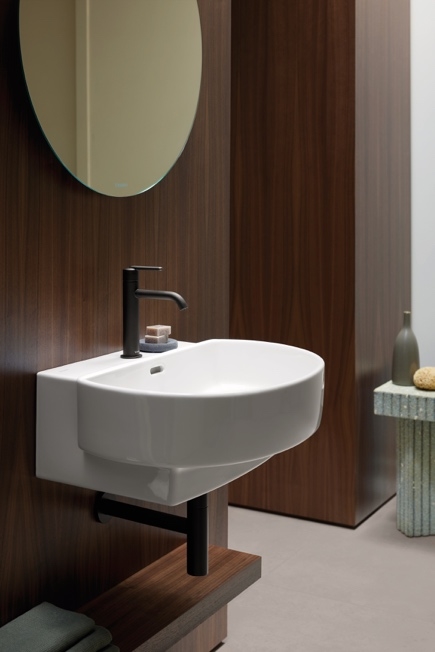 該系列的設(shè)計核心與靈魂色調(diào)——啞光陶土色,以傳統(tǒng)工藝為靈感,賦予陶瓷產(chǎn)品質(zhì)樸自然而溫暖優(yōu)雅的質(zhì)感,使其更具有手工般的真實(shí)觸感。Urquiola表示:“我們的目標(biāo)是利用陶土這種材料,創(chuàng)造出一種讓衛(wèi)浴用品更有層次的畫布。這是有意偏離純白或純黑極簡美學(xué)的嘗試?!边@也構(gòu)成了浴室家具的配色基礎(chǔ),大地色系的陶土色調(diào)以及以自然為靈感的色彩搭配,其中融入了白色、土棕色和啞光炭黑色的微妙變化,預(yù)示著浴室色彩運(yùn)用的全新開放性。